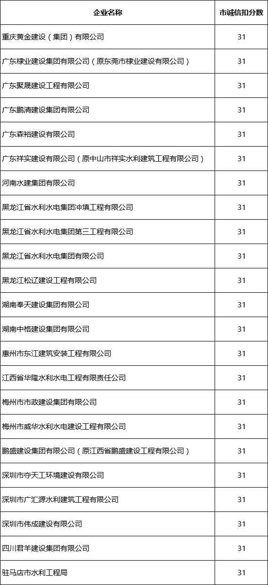 根据《关于公布〈东莞市住房和城乡建设局建设工程企业信用评价及动态管理办法的通知〉》(东建〔2017〕9号)和《东莞市建设工程企业不良行为记分标准》记分代码为SG-024,我局 拟对近期通报的串通投标企业给予记31分处理。